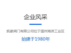 凱豪閥門有限公司位于溫州海濱工業(yè)區,企業(yè)占地面積20000平方米。初建于 1985 年,注冊資金5008萬;工廠主要生產 ANSL、JIS、DIN 和 GB 標準的閘閥、截止閥、止回閥、球閥、蝶閥、